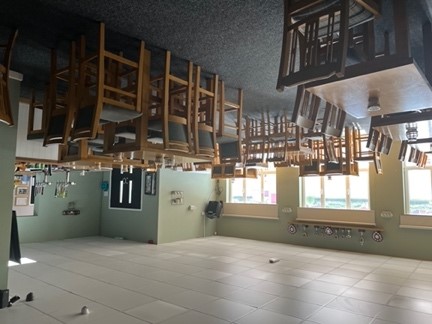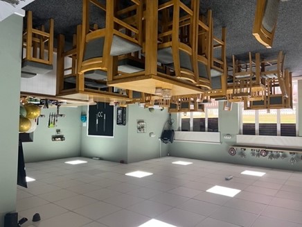The room has access to a kitchen if required and contains disabled toilet facilities and can be configured to provide a dance floor.